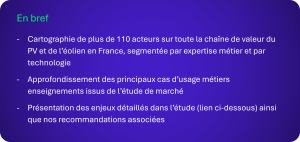 Les grandes catégories présentées ci-dessous sont le résultat de la segmentation des acteurs du secteur au regard de ces expertises et de leur contribution à un projet ENR.