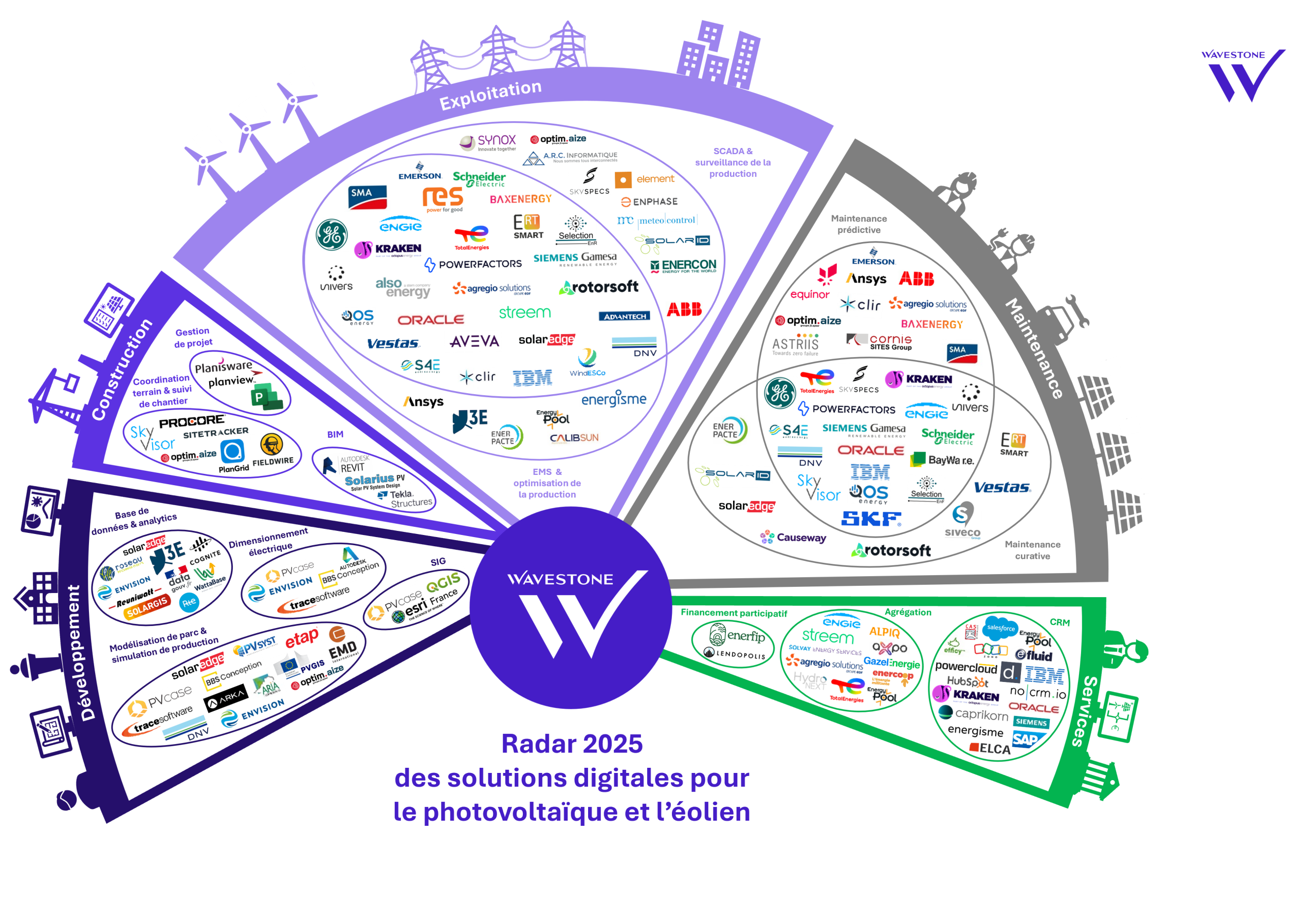 Notre radar se concentre sur les solutions digitales dédiées à l’éolien et au photovoltaïque, deux filières en forte croissance. Il met en lumière les tendances clés : montée en puissance des éditeurs SaaS, diversification des offres par les fabricants, développement de solutions internes par les énergéticiens, et adoption de technologies de pointe.