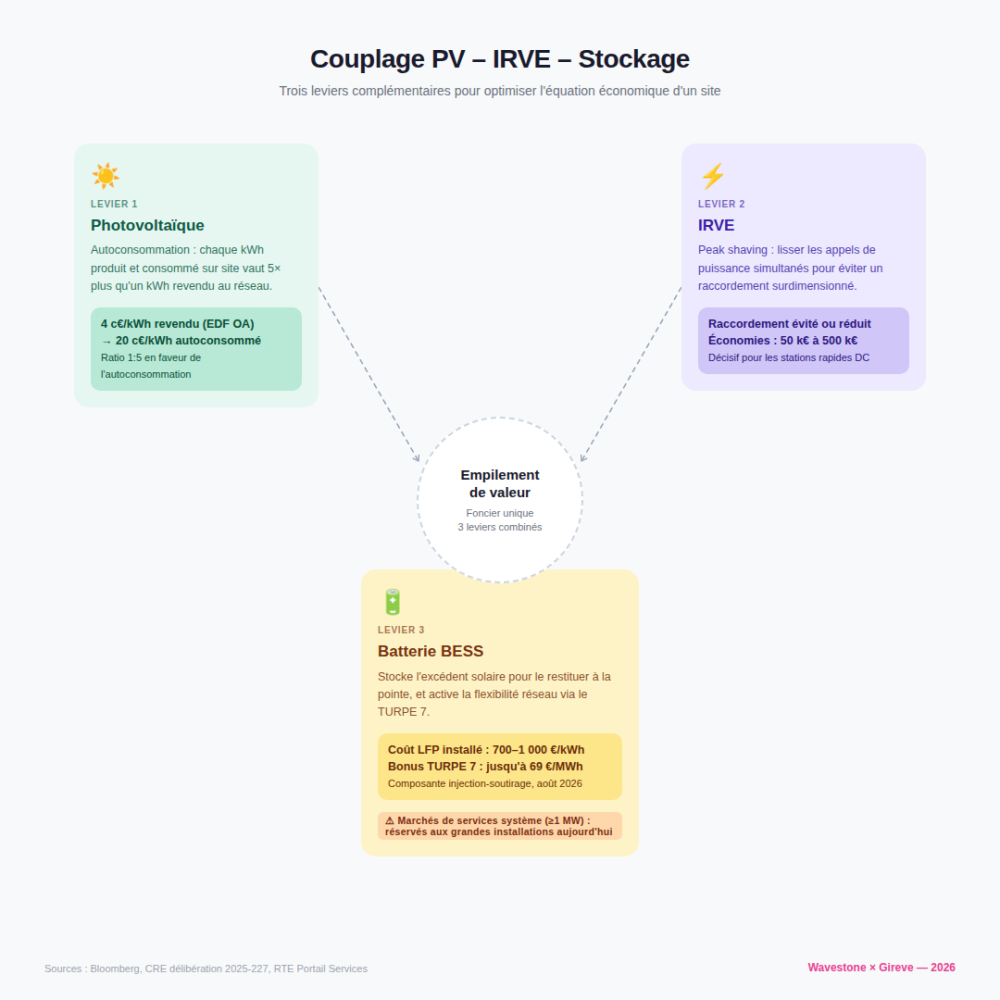 Dans ces situations, la batterie ne sert plus uniquement à optimiser. Elle devient une solution opérationnelle de contournement. Elle permet de soutenir la montée en puissance de la recharge sans attendre des renforcements réseau souvent longs et coûteux.