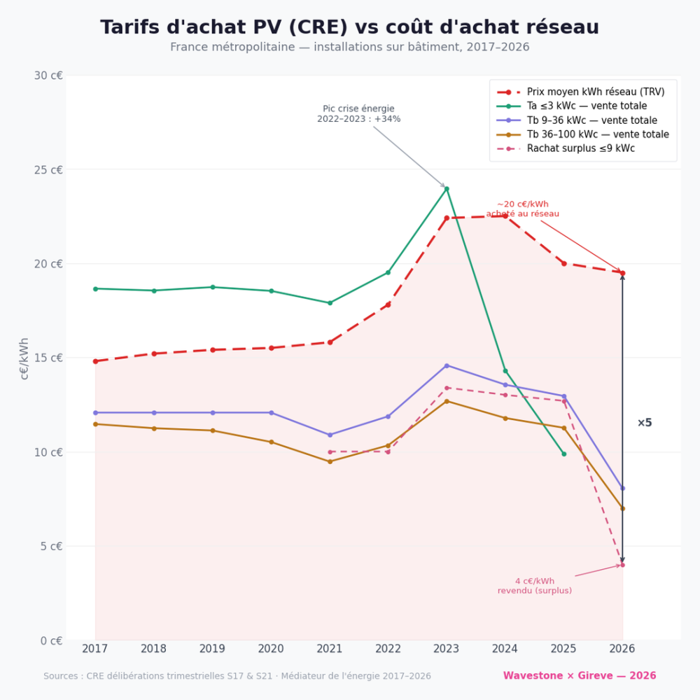 En toile de fond, un signal de marché se renforce. La baisse tendancielle de la valeur de revente de l’électricité solaire rend l’autoconsommation de plus en plus attractive